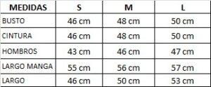 Composición: 95% poliester y 5% elastano. Medidas: Las medidas son tomadas sobre la prenda de lado a lado, sin estirar.
