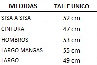 Las medidas son tomadas de lado a lado sobre la prenda sin estirar.