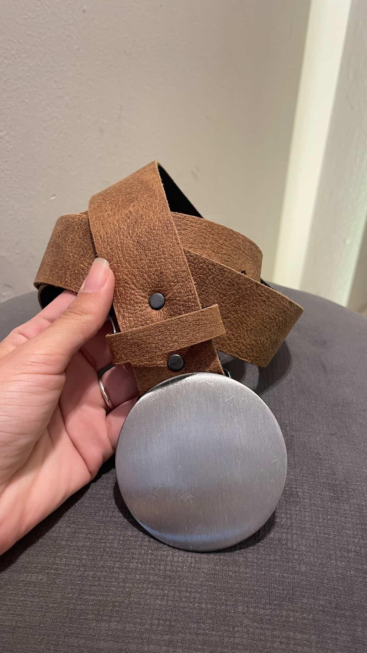 Cinto de cuero, color suela con diferente hebilla, medidas de 4cm ancho y 105 cm de largo