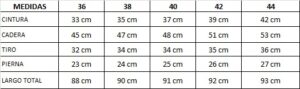 Modelo de jeans elastizado Las medidas son tomadas sobre la prenda de lado a lado, sin estirar.