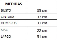 Las medidas son tomadas de lado a lado sobre la prenda sin estirar.
