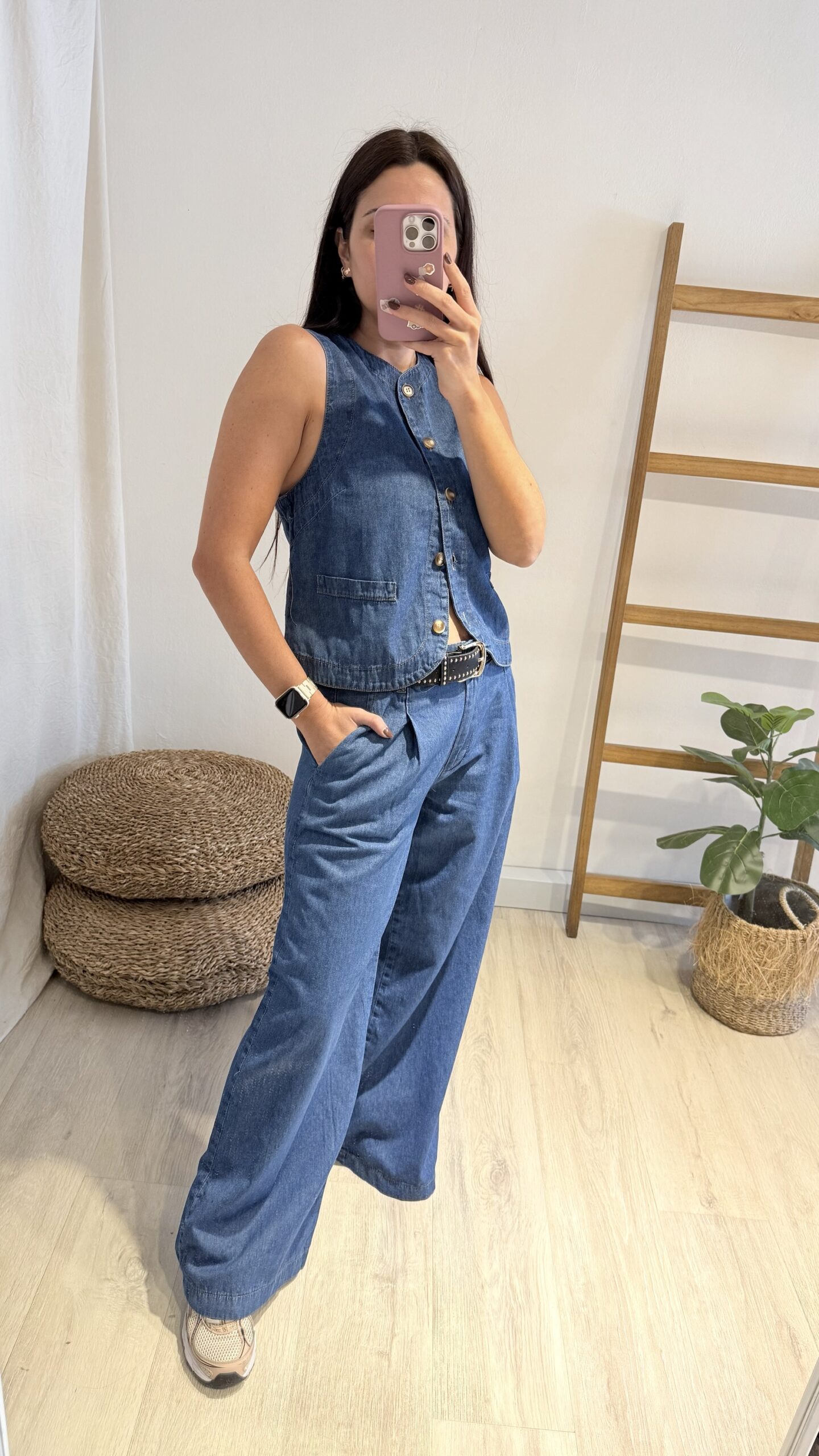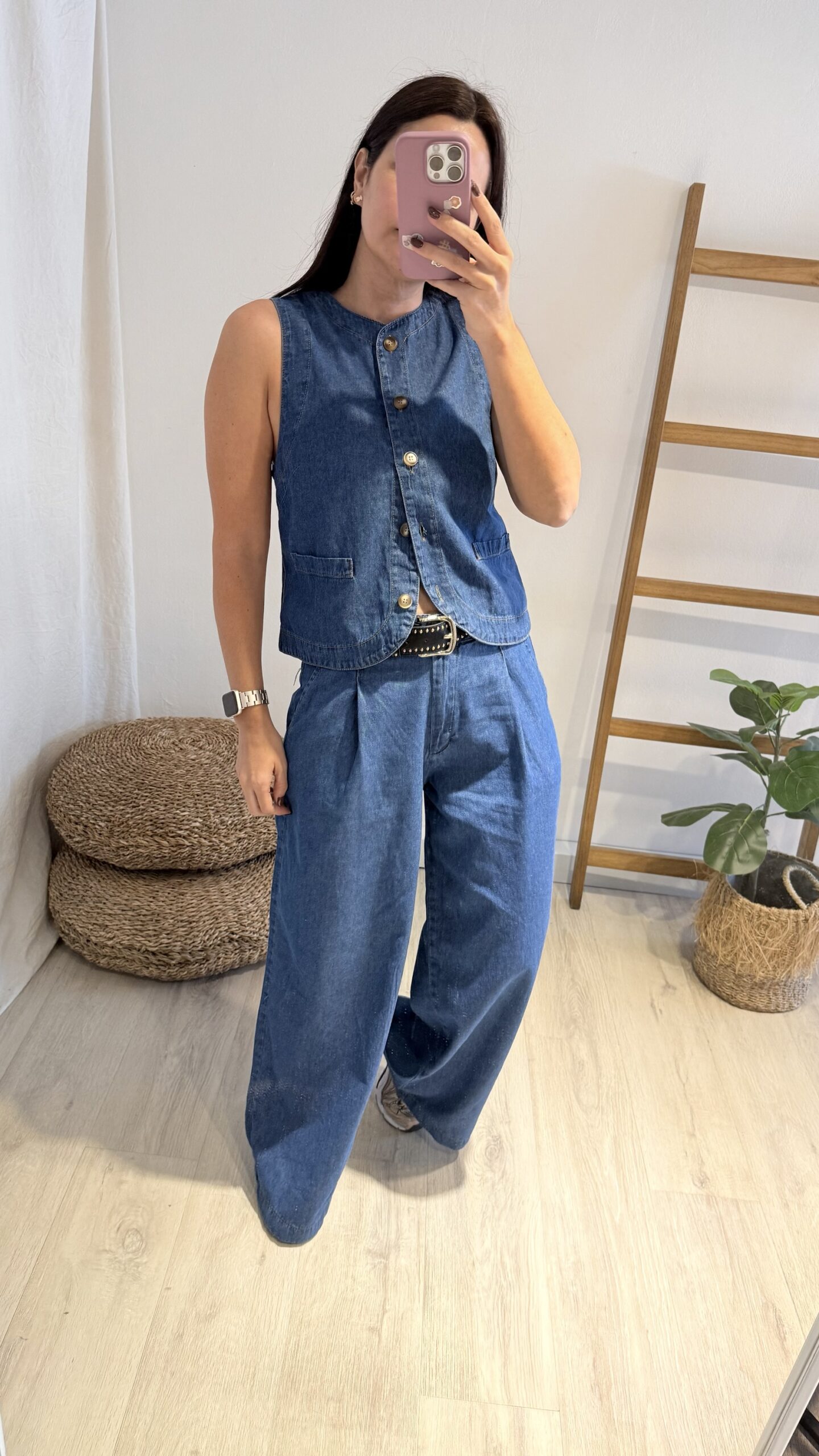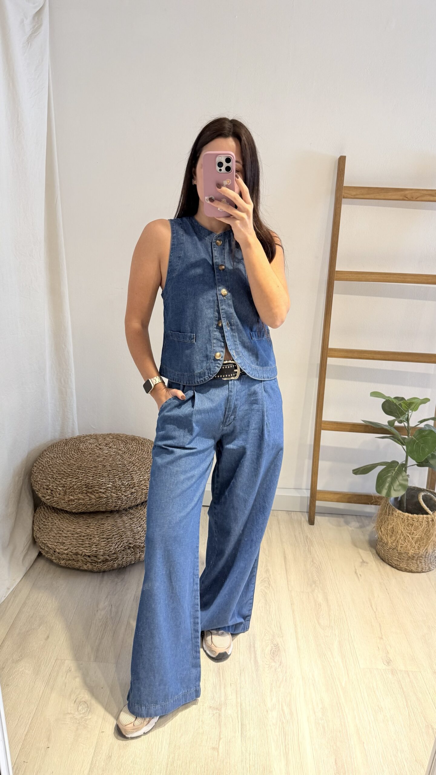 Pantalón de jeans liviano, un modelo amplio y cómodo ideal para el clima de primavera