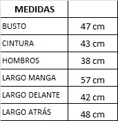 Las medidas son tomadas sobre la prenda sin estirar, de lado a lado.