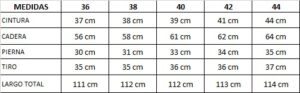 La modelo está usando talle 36 Medidas: Las medidas son tomadas sobre la prenda de lado a lado sin estirar.